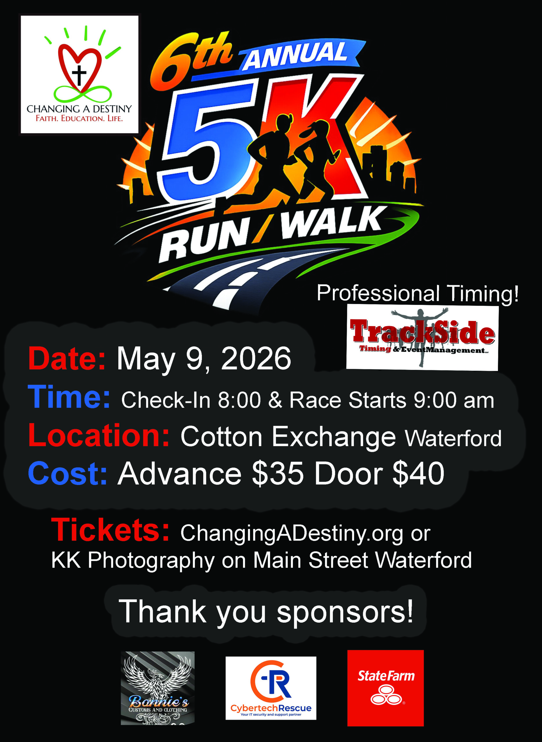 6th Annual 5K Run Walk also on May 9, 2026. Check in 8:00 & run starts at 9:00 am. Professional Timing Available. Get your tickets today! Purchase Tickets Here