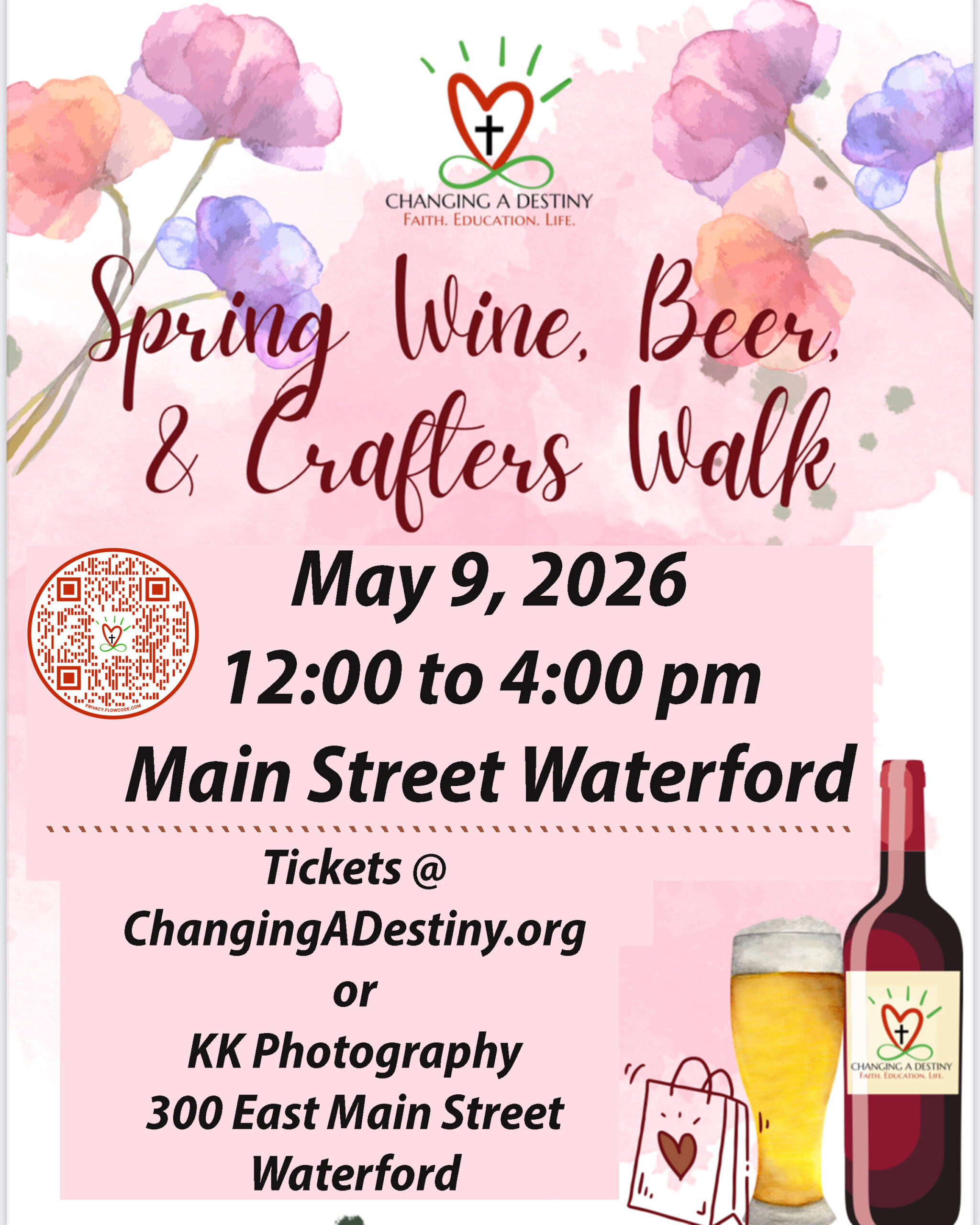 Spring Wine & Beer Tasting Saturday, May 9th 2026 starting noon until 4:00. Crafter Forms Now Available Email: ChangingADestiny@gmail.com or call 414-861-8749. Pick up location: KK Photography 300 East Main Street Waterford WI 53185